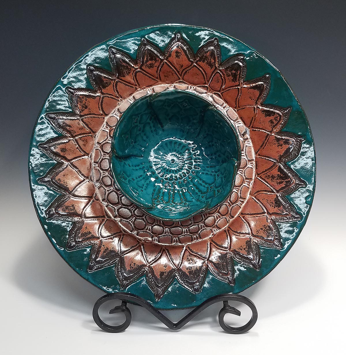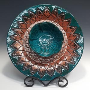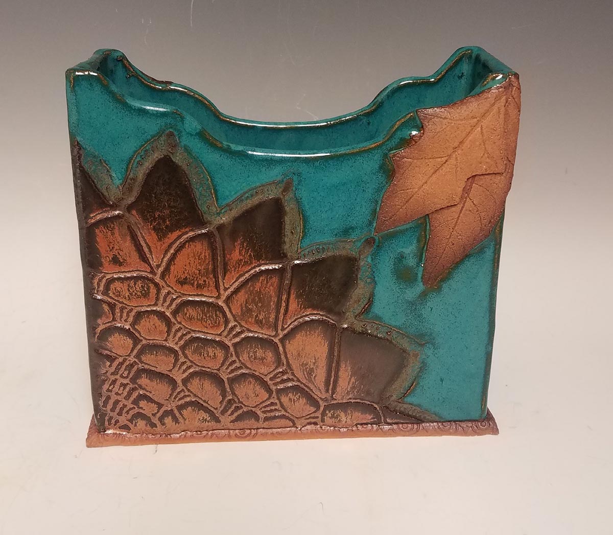 It took me a long time to have the opportunity to explore clay, and make the experience........well.......mine. I went a different direction. I hand build with slabs. You'll see that nearly every piece I make is adorned with leaves.